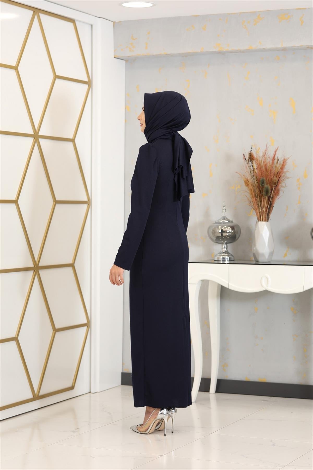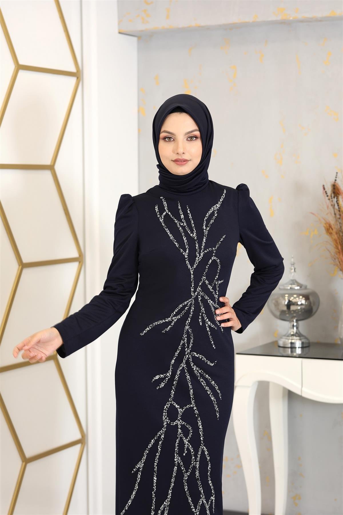 Aplik İşlemeli Kalem Tuana Kalem Tesettür Elbise - Lacivert (tuana0003)