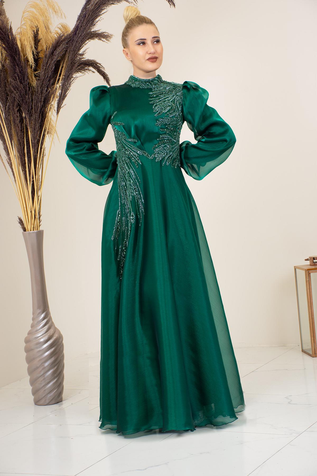 Aplik İşlemeli Yağmur Tesettür Abiye -Zümrüt (yagmur0001)