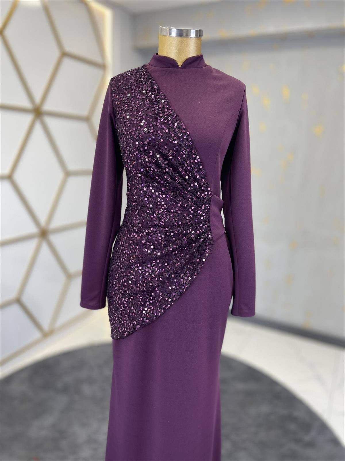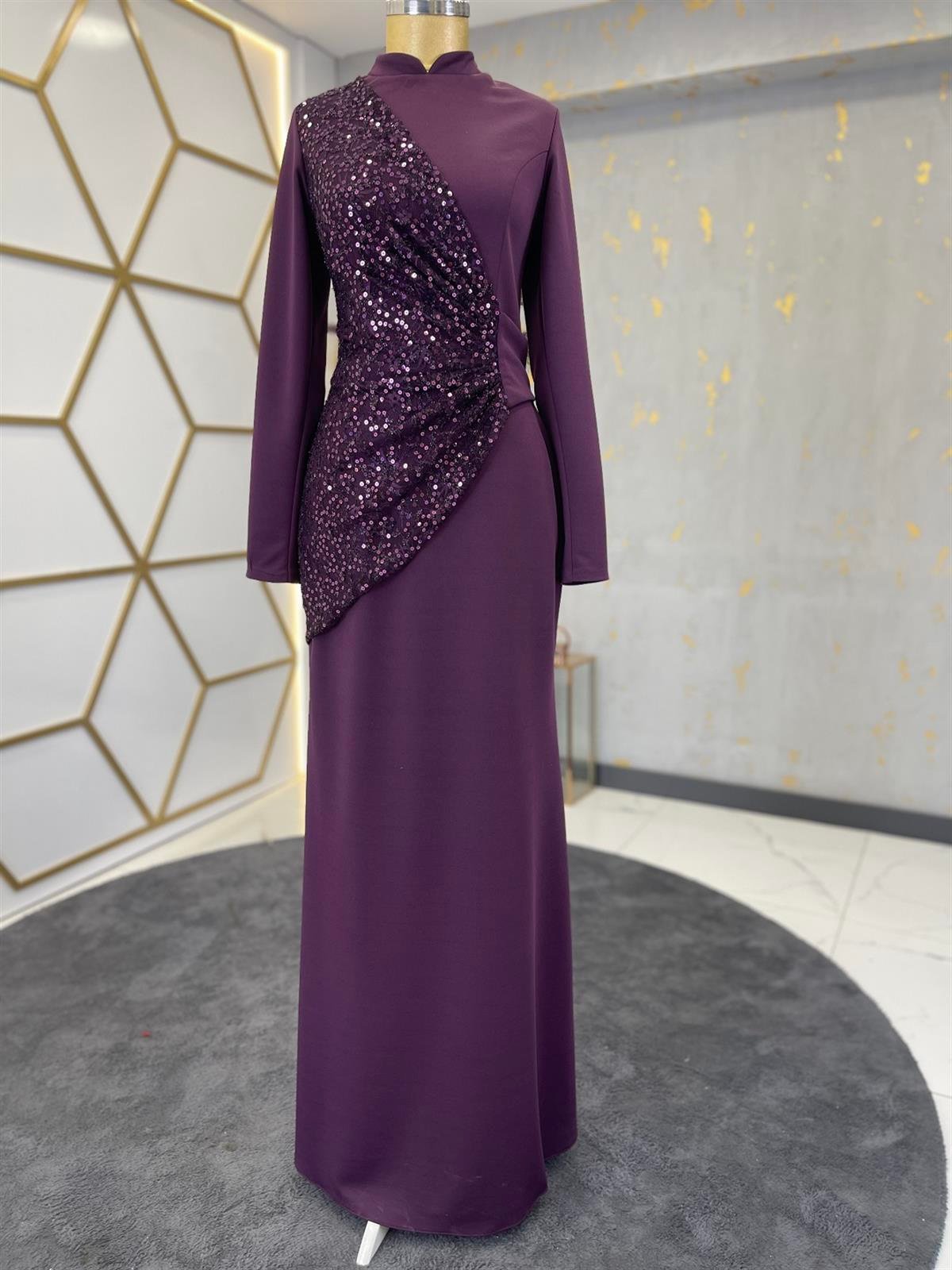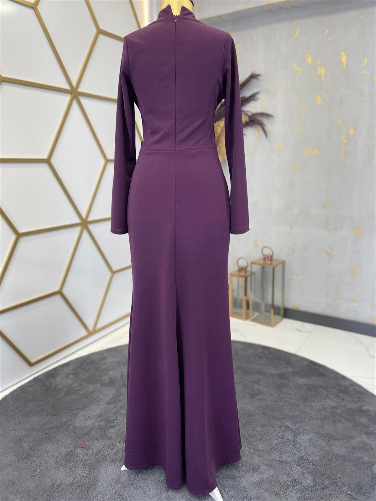 Payet Detaylı Hakim Yaka Yaren Tesettür Abiye - Mürdüm (yaren0005)