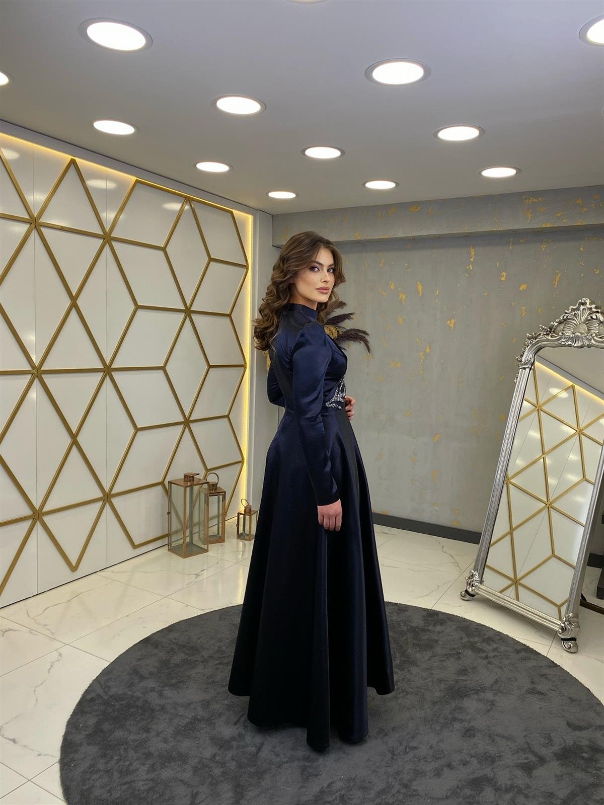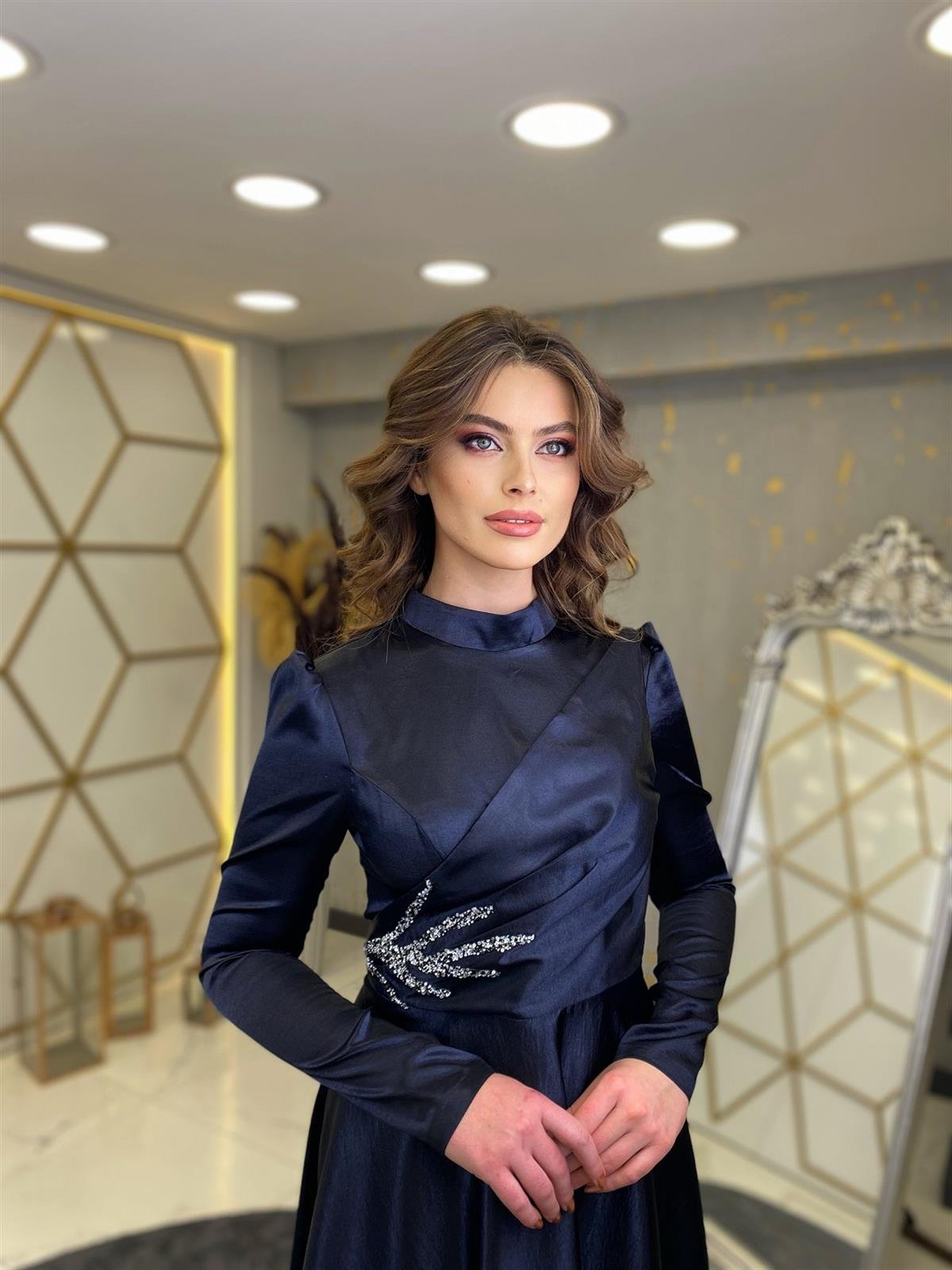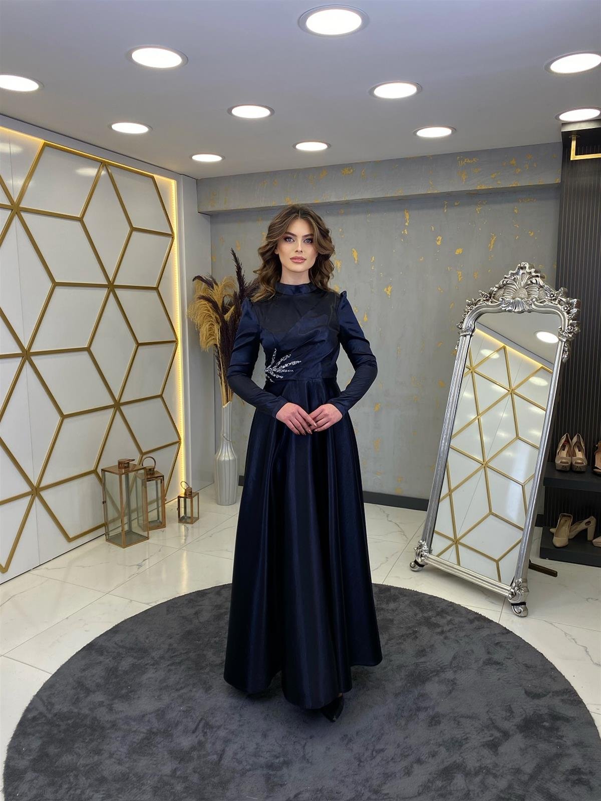 Taş İşlemeli Kloş Etekli Hera Drapeli Tesettür Abiye