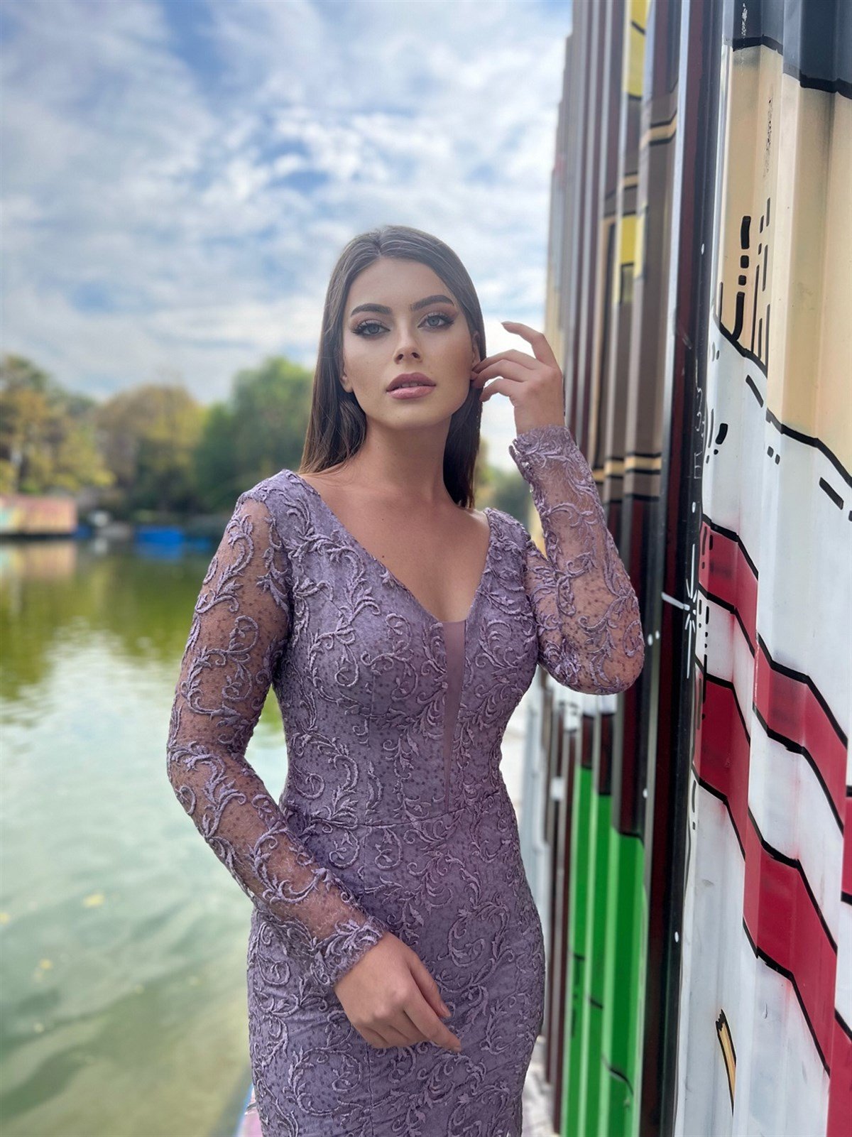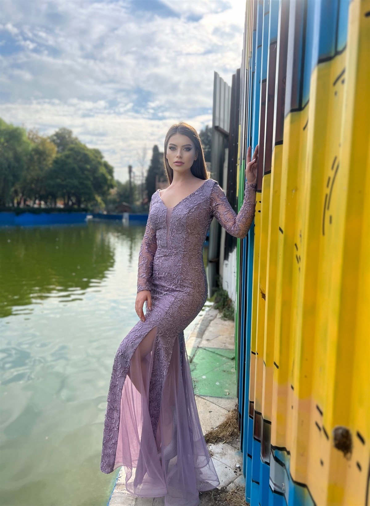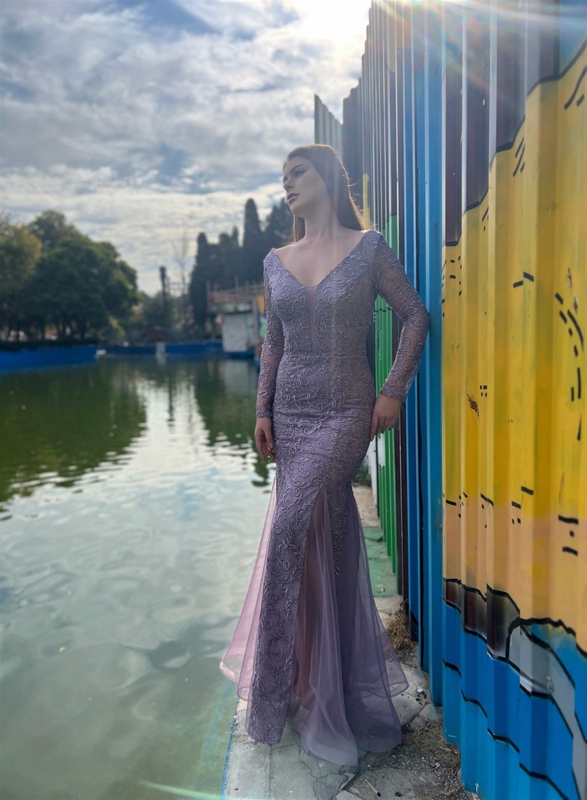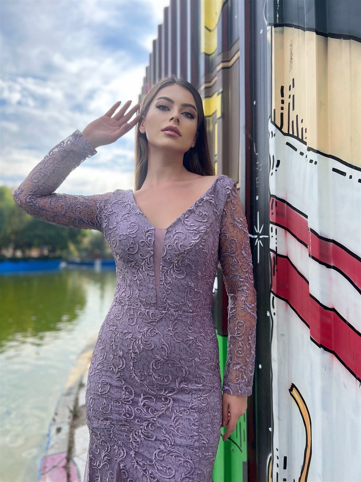 Tül Detaylı Güpürlü Berra Abiye - Lila (berra0004)