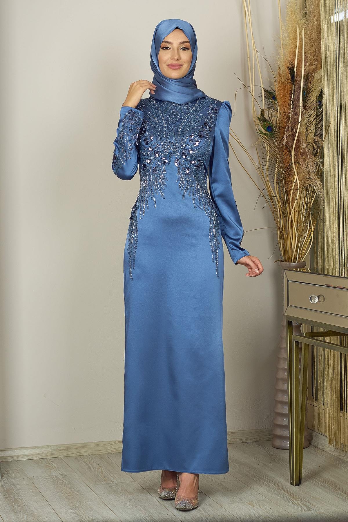 Önü Aplik İşlemeli Sıla Abiye-İndigo (sıla0001)